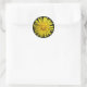 Este encantador pegatina redondo con flores muestra una fotografía de una flor de diente de león amarillo. La foto fue tomada con macrofotografía, lo que dio como resultado un detalle tan brillante que se pueden ver los pétalos individuales y las sombras que se proyectan sobre ellos.