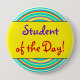 Este caprichoso y positivo diseño de botones muestra el mensaje "¡Estudiante del día!". Un botón como este podría ser usado para reconocer a un estudiante que lo ha hecho bien. [~Z0000317]