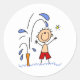 Un chico con figura de palos se para debajo del aspersor para asegurarse de que se mantenga fresco en un cálido día de verano. Este bonito diseño de verano se puede personalizar fácilmente con un nombre u otro texto.