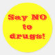 Palabras rojas "Di no a las drogas" en un fondo amarillo. Estos pegatinas serían buenos para las escuelas u otros lugares de jóvenes para motivarlos a decir no a las drogas.