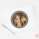 Pegatina redondo para hacer coincidir nuestra invitación "Dionisio y las Satyrs" con una imagen de Dionisio, dios de la producción de vino y de la locura ritual, y las sátiras de negro. En mitología, un satyr es una criatura que habita en madera con la cabeza y el cuerpo de un hombre y las orejas, cuernos y piernas de una cabra. Se caracterizó a las estrellas por su afición a la lechería y el júbilo borracho. Ver la invitación, sobre, confeti, bolso de favor, caja de favores, etiqueta de favor, bolsas de regalo, pegatina redondo y papel de envoltura. Ver toda la colección de Pegatinas de Toga en INVITES | Sección Pegatinas y etiquetas.