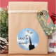 Fotografía original de una brillante cruz de iglesia en hermosos cielos azules con las palabras "Dios es bueno". Cambiar fácilmente el texto para personalizar. Un pegatina inspirador para Navidades y Pascua, así como todo el año.