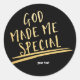Redonda DIOS ME HIZO ESPECIAL Pegatina personalizada negra