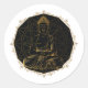 Diseño pegatina Buda Mandala con un ilustracion de un buddha en forma de mandala en líneas aparkly doradas.