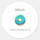 Este lindo donut dibujado a mano se une con una cita graciosa y aparece en un pegatina blanco redondo hecho para iluminar tu superficie instantáneamente!