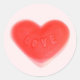 Diseño cuidado con un corazón de caramelos chicle con "amor" escrito en él en tonos rojos y rosas sobre un fondo rosado. Pegatina con un diseño de personalizable para que usted pueda personalizar con su propio texto, imágenes e ideas. Creado usando una fotografía original y técnicas digitales de Jess Perry.