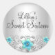 Redonda Dulce floral de plata verde azulada 16 Pegatina