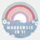Redonda El arcoiris retro y los daisies Pegatina de cumple