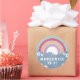 Estos pegatinas personalizados, creados para coordinar con la suite "Retro Rainbow", presentan un diseño de arcoiris y nubes de inspiración retro, con un puñado de margaritas alrededor del saludo. Utilícelos para sellar los bolsos de regalo, o como etiquetas decorativas (para tazas de fiesta, o tapones de quequitos, etc.). Son perfectas para el cumpleaños de un niño, ¡o reutilizarlas para una ducha de bebé!