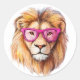 El león con gafas rosas en el fondo blanco. Esto es pegatina para los amantes de los leones. Diseño de IA #pegatinas #divertidos #animales #león #jungla