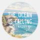 Un pegatina de personalizable con una fotografía original de la costa de Maui con las editables palabras "El océano llama y debo irme" en el centro.