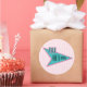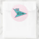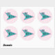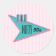 Pegatina redondo con una imagen de un cartel de comedor azul y rosa de los años 50 con el texto "Los 50 nimios" en franjas suave rosadas. Ver pegatina de vinilo cortado por personalizado, confeti, bolsa de favores, etiqueta de favor, bolsas de regalo, etiqueta y papel de envoltura. Ver toda la colección de Pegatinas de los años 50 en INVITES | Sección Pegatinas y etiquetas.