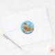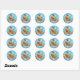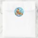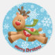 Este encantador pegatina presenta un ilustracion bonito de Rudolph, el reno de nariz roja, ambientado en un patrón de copos de nieve en un fondo azul.