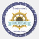 Un pegatina de azul marino y blanco con un patrón de ancla circular y un timón central con una pancarta con la palabra "náutica". <a href='http://www.freepik.com/free-vector/rounded-sailing-badges-in-flat-design_863884.htm'>Diseñado por Freepik</a>. La tarjeta es fácil de personalizar con su redacción, tipo de letra, color de fuente, opciones de forma de papel y elección de seis tipos de papel.<br/>() ¿No es exactamente lo que buscas? Todos nuestros productos pueden ser personalizados diseñados para satisfacer sus necesidades sin cargo adicional.<br/>() Simplemente contacte con nosotros en heartfelthelper@gmail.com<br/>() Productos de coordinación disponibles: ¡Simplemente pídanos!