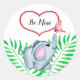 Este lindo elefante bebé está sobre un fondo de hojas de palma verdes. En la punta de su baúl hay una mariposa rosa. El texto de la tarjeta dice: 'Sé mi San Valentín'. Estos pegatinas se coordinan con la "Tarjeta de San Valentín de los hijos del elefante y la mariposa" para niños. Se puede usar en el sobre o como sello para bolsas de regalo.