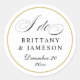 Elegante pegatina boda en blanco y negro con "lo hago" en caligrafía y acento editable de borde dorado. Personalizar también el color de fondo.
