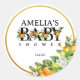 Añada un toque fresco a su ducha de bebé con este elegante pegatina de temática cítrica. Con sus vibrantes naranjas acuáticas, su exuberante vegetación y su moderno acento dorado, es perfecto para sellar favores, sobres o decoraciones. Un detalle elegante y refrescante para cualquier celebración.