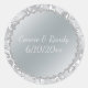 Redonda Elegante Pegatina Boda de Monograma Plateado