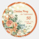 Elegante pegatina redondo floral de 50 años - encantadoras flores naranjas, luces de cuerda y un borde naranja. ¡Utilícelos en invitaciones, favores partidarios y más!