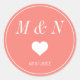 Elegante pegatina de iniciales de pareja de bodas de coral