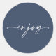 Añade un toque final encantador a tus favores matrimoniales con este elegante pegatina redondo que presenta la palabra "disfrutar" en un guión blanco sobre un fondo marino clásico. Perfecto para sellar cajas de regalo, decorar favores de fiesta o agregar un acento reflexivo a los regalos de agradecimiento a los bodas, duchas de novia o fiestas de compromiso.