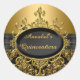 Redonda Elegante Pegatina de Quinceanera de Damask Black &