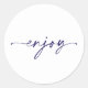 Añade un toque final encantador a tus favores matrimoniales con este elegante pegatina redondo que presenta la palabra "disfrutar" en el guión de la marina flotante sobre un fondo blanco limpio. Ideal para sellar cajas, decorar favores de fiesta o realzar regalos de agradecimiento a los bodas, duchas de novias o fiestas de compromiso.