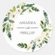 Elegante Pegatina redondo Boda de Rosas Blancas.
