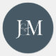 Redonda Elegante Pegatina redondo monograma azul de la Mar
