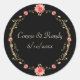 Redonda Elegante Pegatina rosa rosa y Boda negro