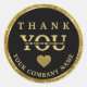 Redonda Elegante purpurina negro de oro Gracias pegatina