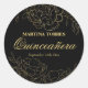 Redonda Elegante Quinceanera Pegatina floral negro y dorad
