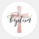 Redonda Elegante Rubor Cross Baptism Favor de los Pegatina