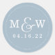 Redonda Encantador Boda Monograma Pegatina Dusty Azul