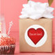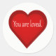 Un corazón gráfico de la artista/diseñadora Charmaine Paulson con el texto "Eres amado" en un pegatina.