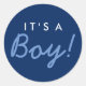 Redonda Es un chico Pegatina de Baby Shower - Blanco azul