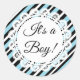Es un niño Pegatina azul y negro para invitaciones a la ducha de bebé, anuncios de nacimiento o para sellar bolsos de favores a la ducha de bebé.