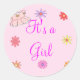 Utilice este pegatina rosado "Es un Chica" para sellar sus anuncios de nacimiento o las invitaciones a la ducha de bebé. Pegatina / etiqueta presenta un fondo rosa con ramas de flores y las palabras "Es un Chica".