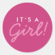 Redonda Es un Pegatina Chica de Baby Shower - rosa y blanc