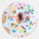 Una rosquilla con helado de vainilla y salpicaduras de colores. Agradable y delicioso.