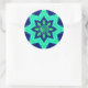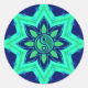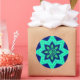 Símbolo de YinYang situado dentro de un patrón de flor caleidoscopio rodeado de estrellas azules