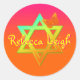 Este pegatina de Bat Mitzvah personalizado redondeado tiene una estrella de David verde neón, naranja, rosa, amarillo y azul y un naranja brillante y mariposa amarilla que coincide con la invitación de Bat Mitzvah que se muestra a continuación. El texto es personalizable. Si necesita cualquier otro elemento que coincida, envíe un correo electrónico a niteowlstudio@gmail.com con su solicitud.