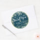 Wedding Favor Gracias Plantillas Pegatinas - Guión con letras elegantes, marco floral dorado vintage y luces de cadena modernas sobre fondo damasco azul. Un diseño perfecto para tu gran día. ¡Todo el estilo de texto, colores, tamaños se pueden modificar para adaptarlo a sus necesidades!