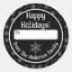 Redonda Felices vacaciones Pegatina negro con copos de nie