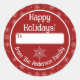 Redonda Felices vacaciones Pegatina rojo con copos de niev