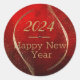 Redonda Feliz año nuevo 2024 Pegatina de oro rojo