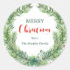 Este pegatina presenta una corona de Navidades acuarelas con bayas y un tipo de letra de guion verde y rojo. Perfecto para sus tarjetas de Navidad, o para regalos/empaque.