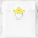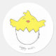Este pegatina está impreso con un pollo bebé dibujado a mano, feliz y parcialmente eclosionado.