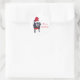Comparta la felicidad con los amantes del pug con estos lindos pegatinas. El arte incluye una pintura de un perro de cerdo blanco y negro con un sombrero de Santa y rojo y una cinta roja. El texto dice: Feliz Navidad y está escrito en rojo; el fondo es blanco. El texto se puede personalizar fácilmente en el formulario de plantilla.