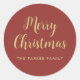 Añada un toque de encanto festivo a sus regalos, tarjetas y paquetes de vacaciones con este elegante pegatina de "Feliz Navidad". Con un falso guión informal de oro en un vibrante fondo rojo, es perfecto para difundir alegría por las vacaciones. Excelente para favores de partido, sobres o proyectos de bricolaje, estos pegatinas le aportan un toque moderno pero clásico a las celebraciones de sus Navidades.